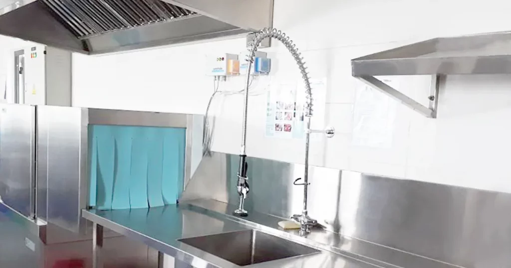 Để đảm bảo môi trường làm việc thoáng mát và an toàn, hệ thống bếp cần được trang bị hệ thống thông gió và hút mùi công suất lớn. Điều này giúp loại bỏ hơi nóng, khói và mùi thức ăn trong quá trình nấu.