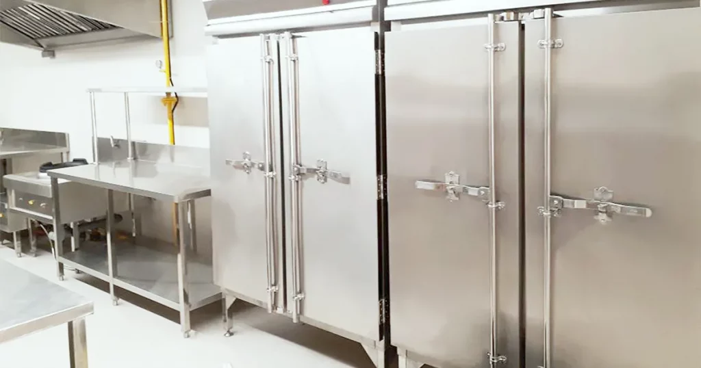 Các thiết bị như tủ đông, tủ mát công nghiệp phải đủ lớn để lưu trữ thực phẩm cho nhiều sự kiện cùng lúc, đảm bảo chất lượng thực phẩm trong suốt quá trình lưu trữ.