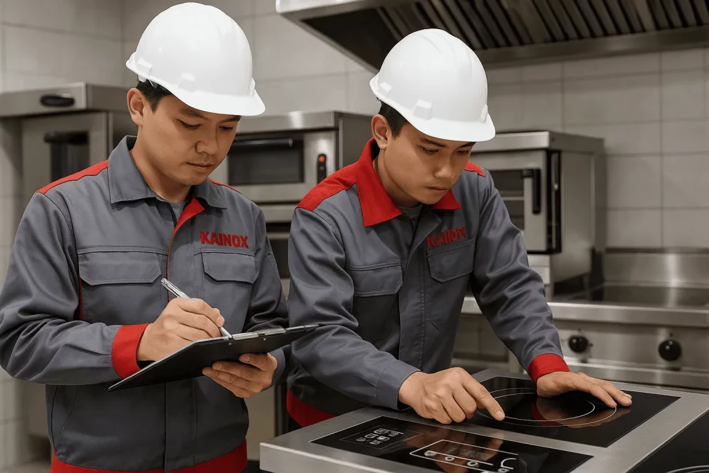 Lắp đặt và phối hợp thiết bị bếp Âu trong thực tế KAINOX không chỉ cung cấp bếp, mà còn tư vấn vị trí đặt – luồng vận hành – cấp gas/hút mùi sao cho phù hợp với tổng thể mặt bằng bếp. Một số phối hợp phổ biến: Bếp Âu + bếp chiên phẳng…