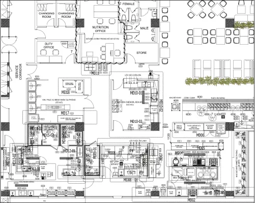 (Bản phác thảo bố trí thiết bị khu vực Bếp do Công ty CP SX TM DV KAINOX thực hiện)