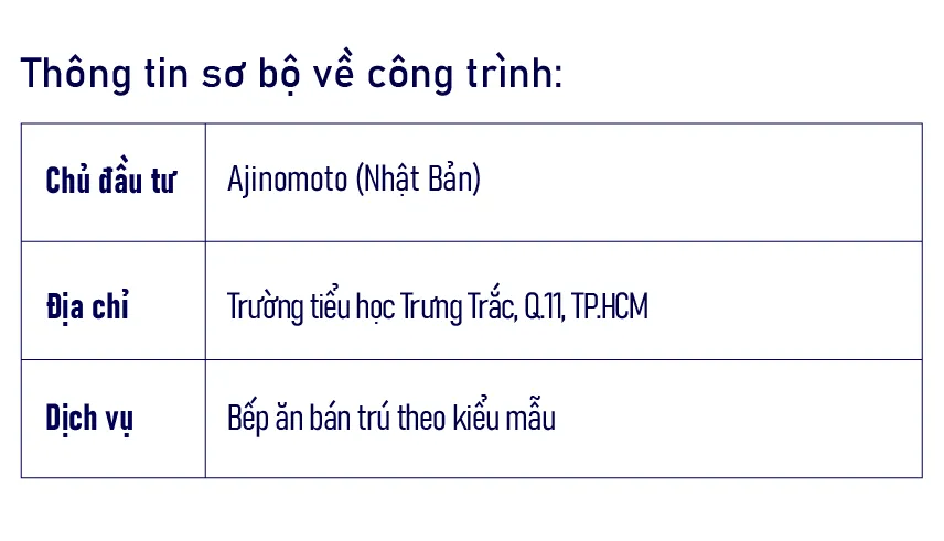 DỰ ÁN BẾP TRƯỜNG TIỂU HỌC – THEO TIÊU CHUẨN NHẬT BẢN
