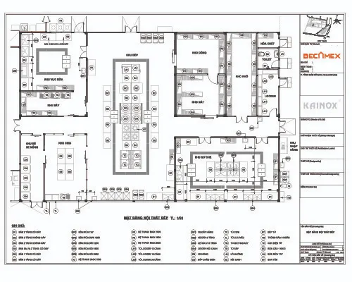 (Bản phác thảo bố trí thiết bị khu vực Bếp do Công ty CP SX TM DV KAINOX thực hiện)