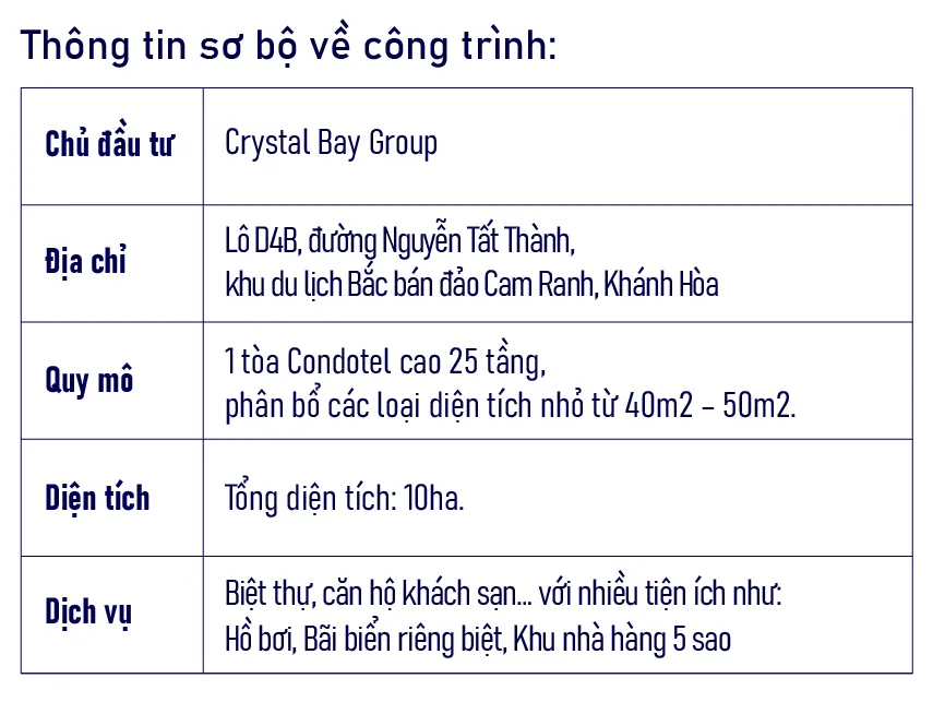 Dự án nằm trong khuôn viên rộng hơn 10ha, với nhiều phân khu chức năng khác nhau như Biệt thự, căn hộ khách sạn… với nhiều tiện ích như: Hồ bơi, Bãi biển riêng biệt, Khu nhà hàng 5 sao sang trọng, cảnh quan nghỉ dưỡng lý tưởng.