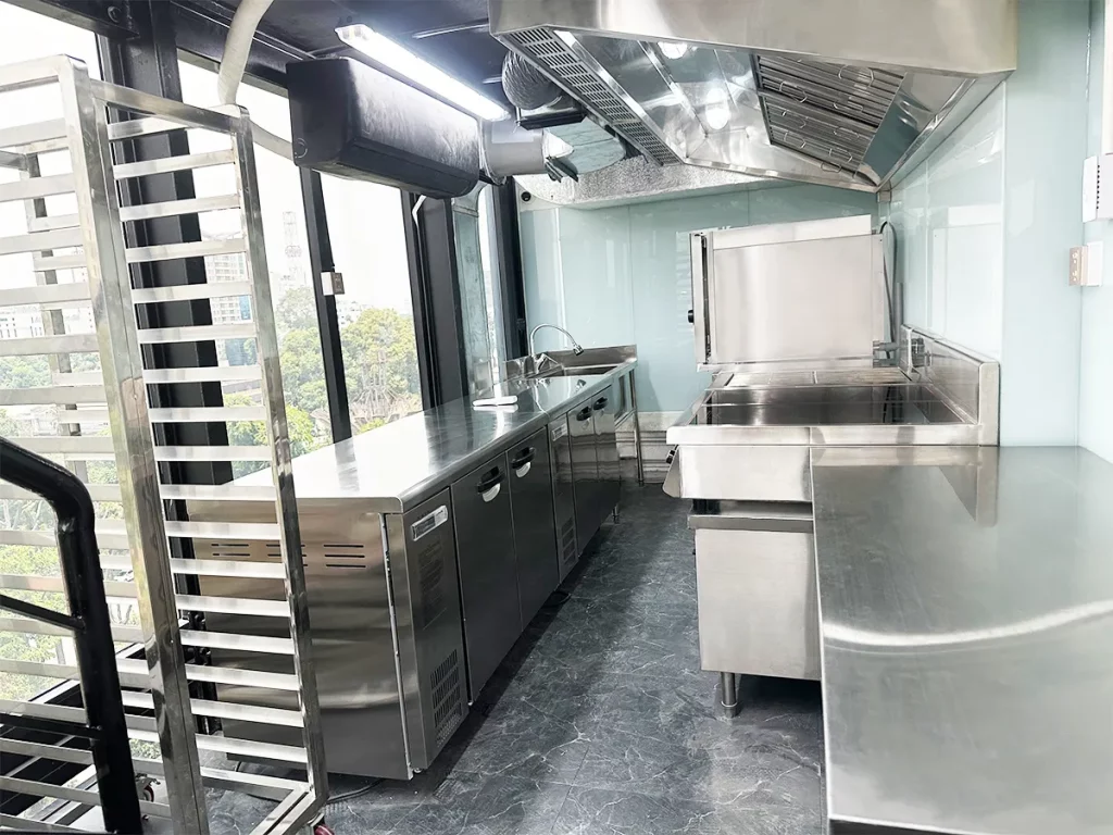 • Ứng dụng công nghệ thông minh: Tích hợp các giải pháp công nghệ hiện đại trong quản lý bếp – từ hệ thống hút khử mùi công suất lớn, quản lý nhiệt độ – độ ẩm, cho đến tự động hóa trong một số thao tác vận hành.