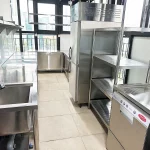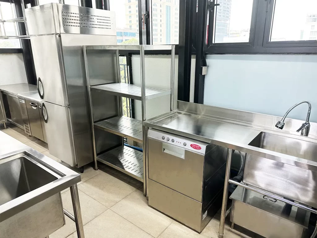 • Khu vực bếp nấu chính: được trang bị bếp âu, bếp từ, lò nướng đa năng – đảm bảo phục vụ thực đơn phong phú ở tốc độ cao.