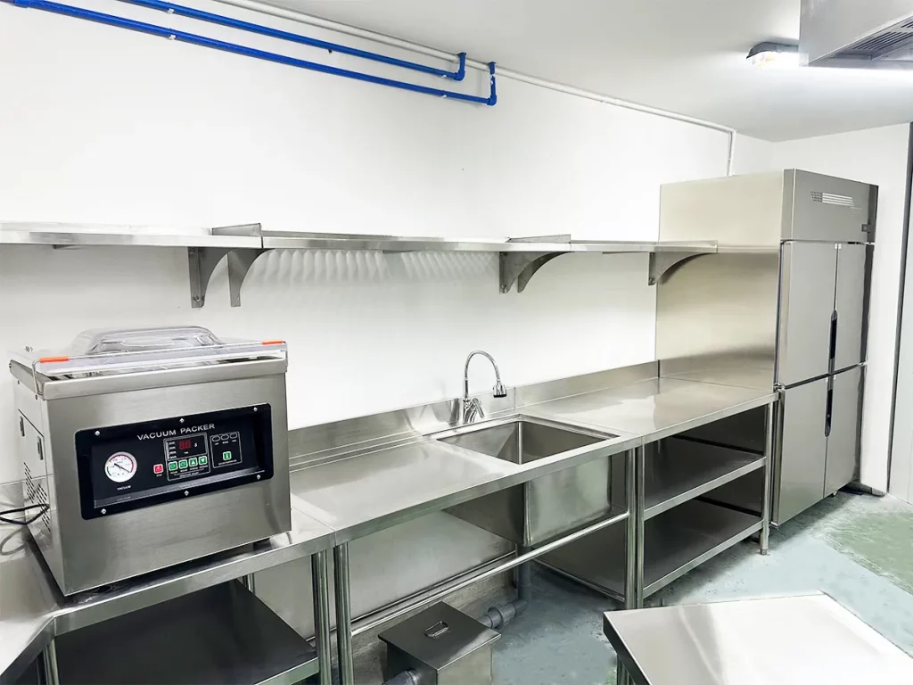 • Tủ mát, bàn lạnh, thiết bị inox: chất lượng cao cấp, vệ sinh dễ dàng, tối ưu hóa công năng sử dụng.