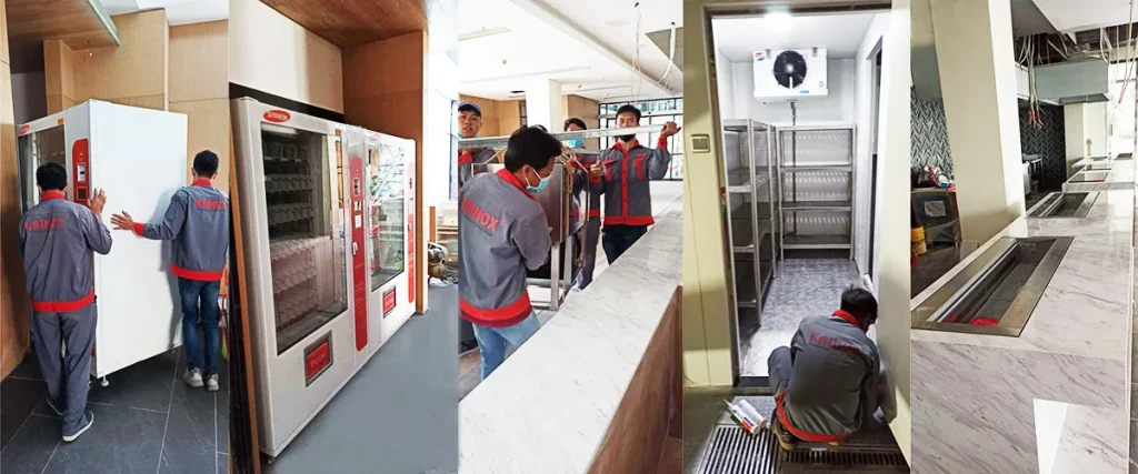 Quá trình này đảm bảo rằng bố trí bếp không chỉ phù hợp với không gian mà còn đáp ứng hiệu quả trong hoạt động của bếp công nghiệp.