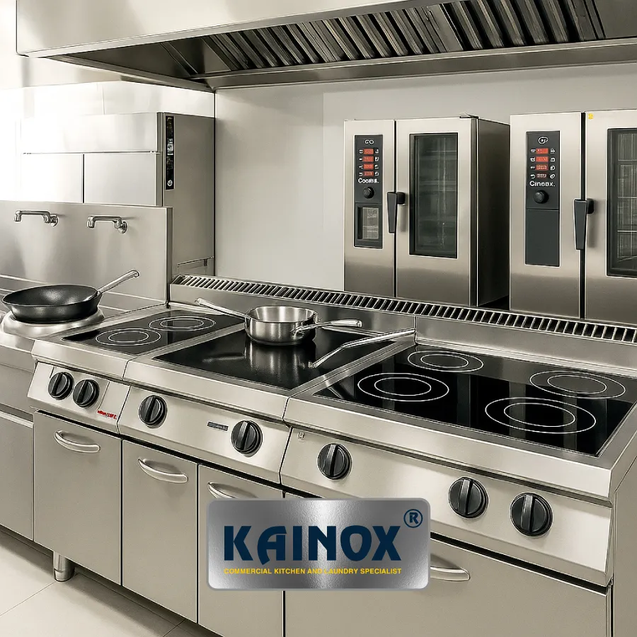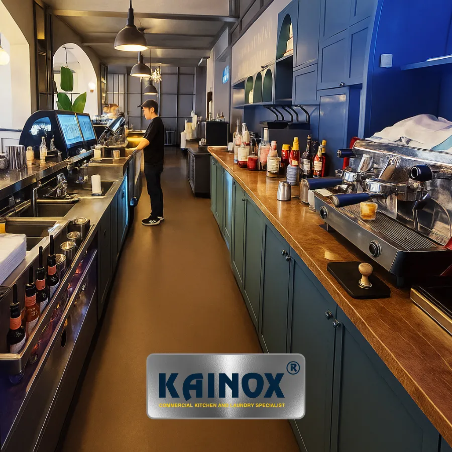 – KAINOX bố trí luồng bếp một chiều gồm: sơ chế → chế biến nóng → quầy phục vụ → khu rửa – giúp đội ngũ làm việc mượt mà, tiết kiệm diện tích mà vẫn đạt hiệu quả cao.
