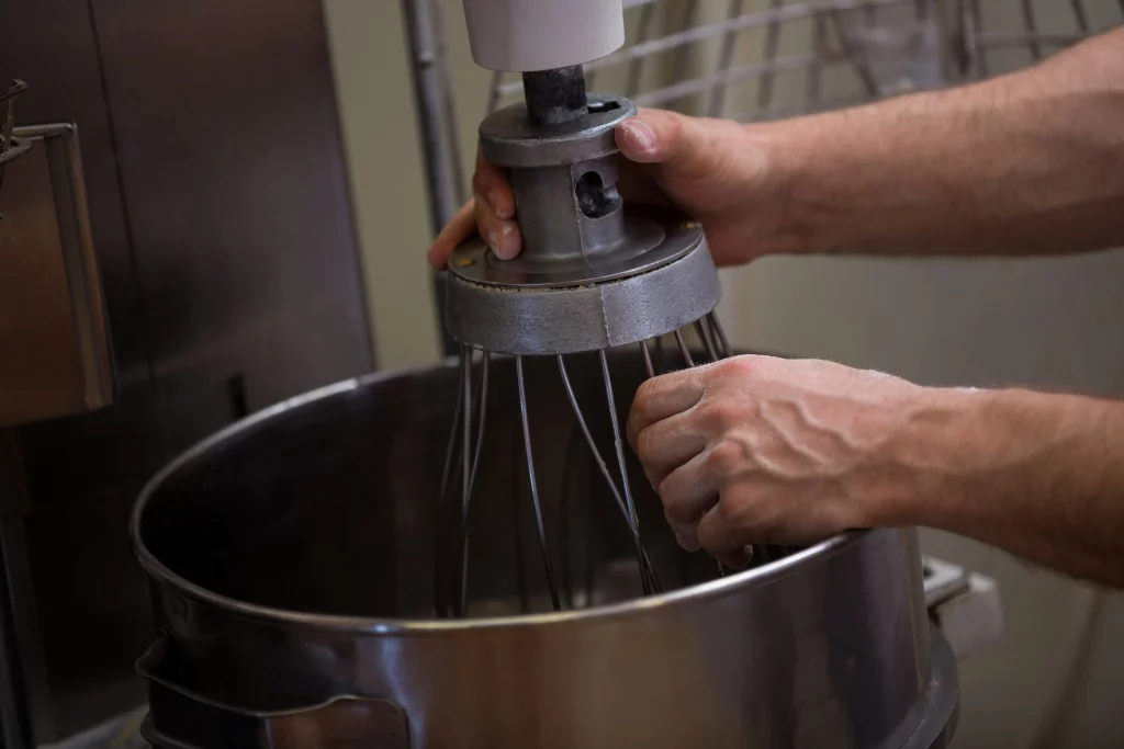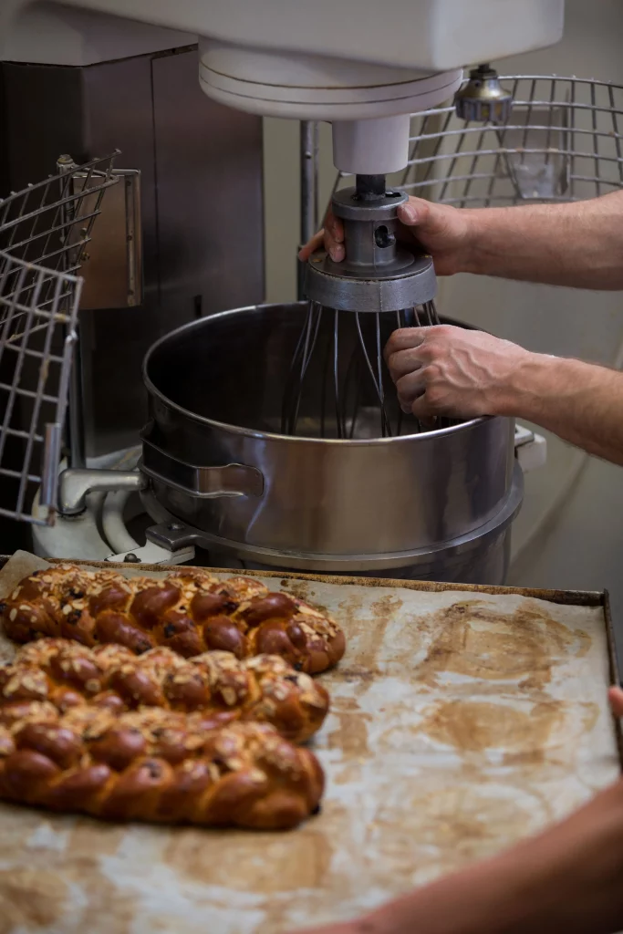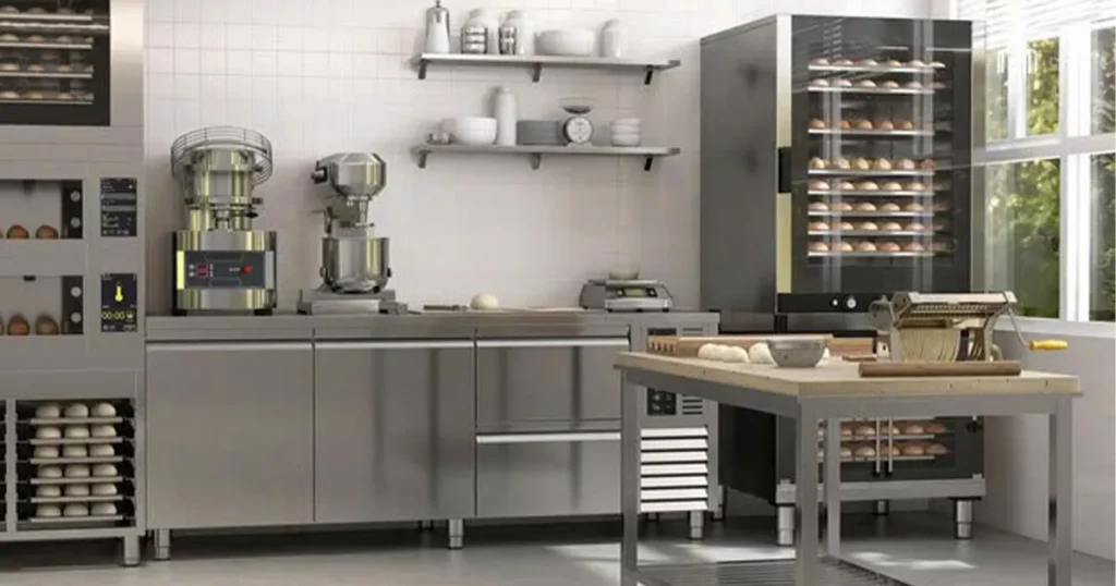 Một khu bếp bánh cơ bản – dù là tiệm bánh nhỏ hay mô hình khởi nghiệp – sẽ cần các thiết bị chính yếu dưới đây để đảm bảo quy trình nhào, ủ, nướng và hoàn thiện bánh được đồng đều, hiệu quả và an toàn thực phẩm: