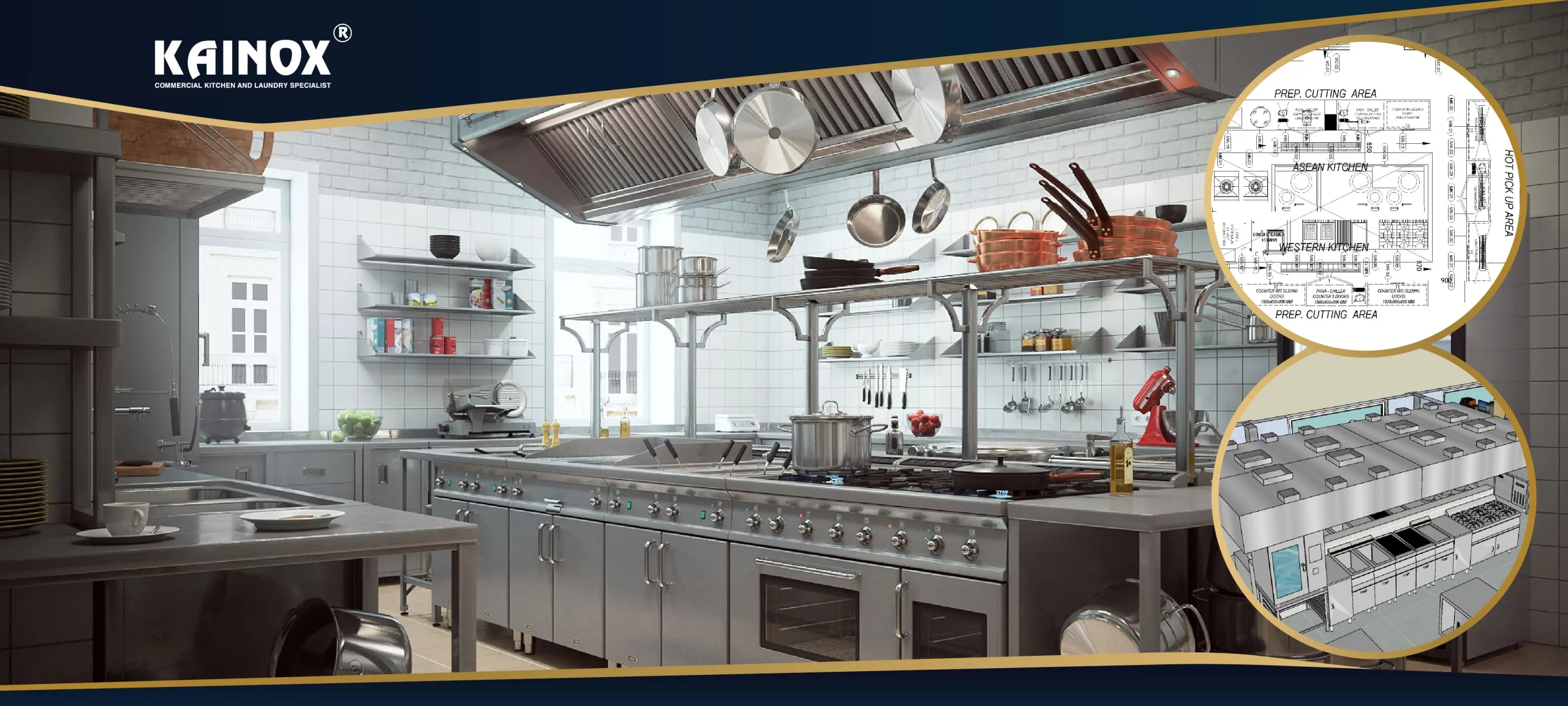 Giải pháp thiết kế linh hoạt KAINOX thiết kế & cung cấp các giải pháp bếp công nghiệp tùy chỉnh, phù hợp không gian và yêu cầu cụ thể của khách hàng. Điều này giúp tối ưu hóa quy trình làm việc & tận dụng tối đa không gian bếp.