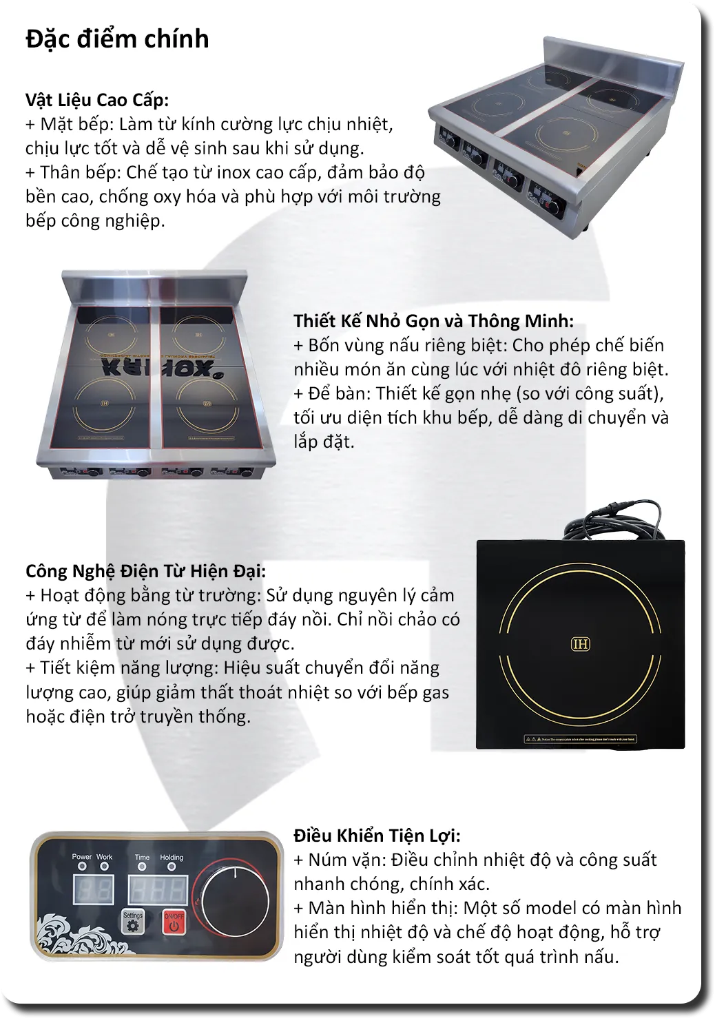 Đặc điểm của Bếp Âu Điện Từ 4 Họng 3.5kW để Bàn KAINOX