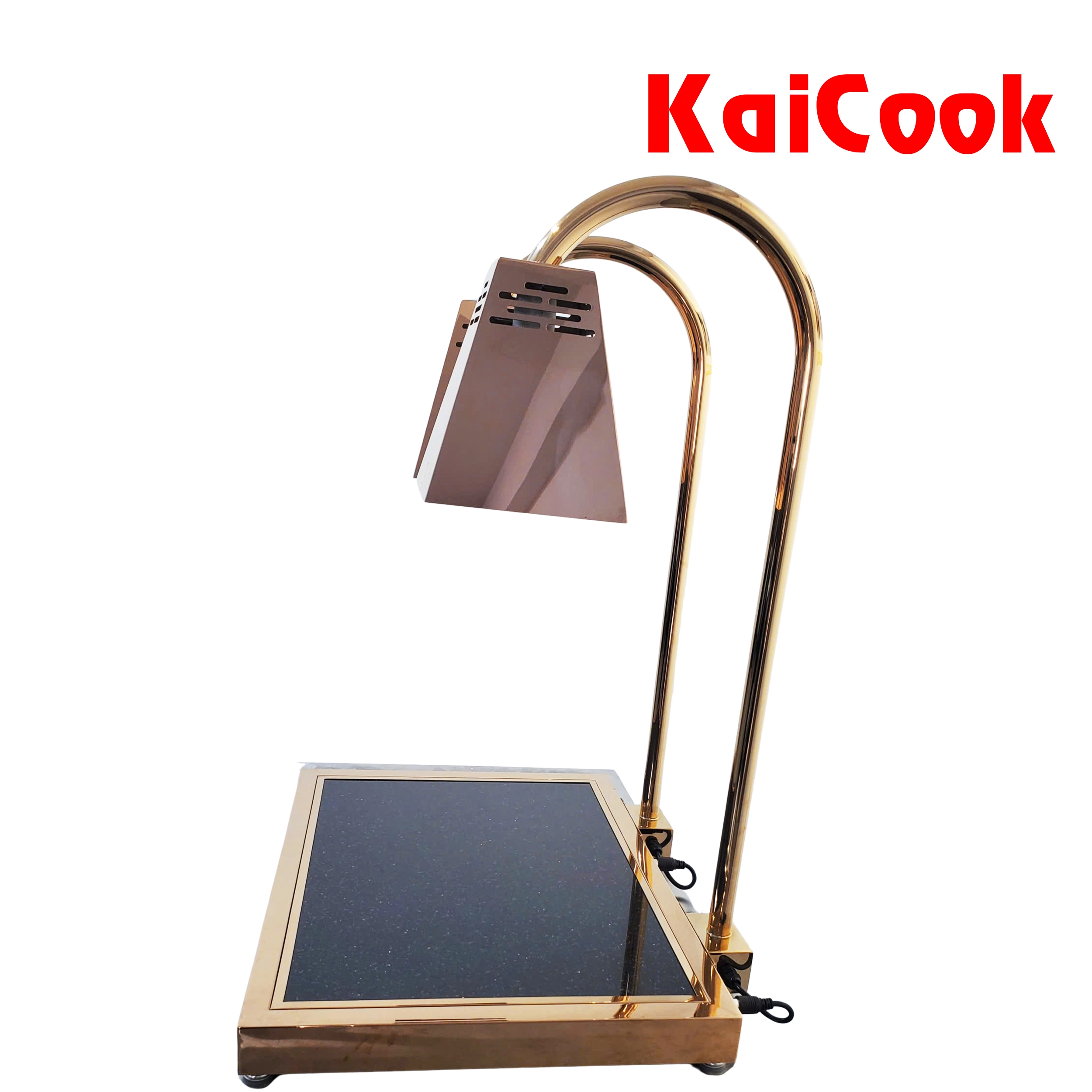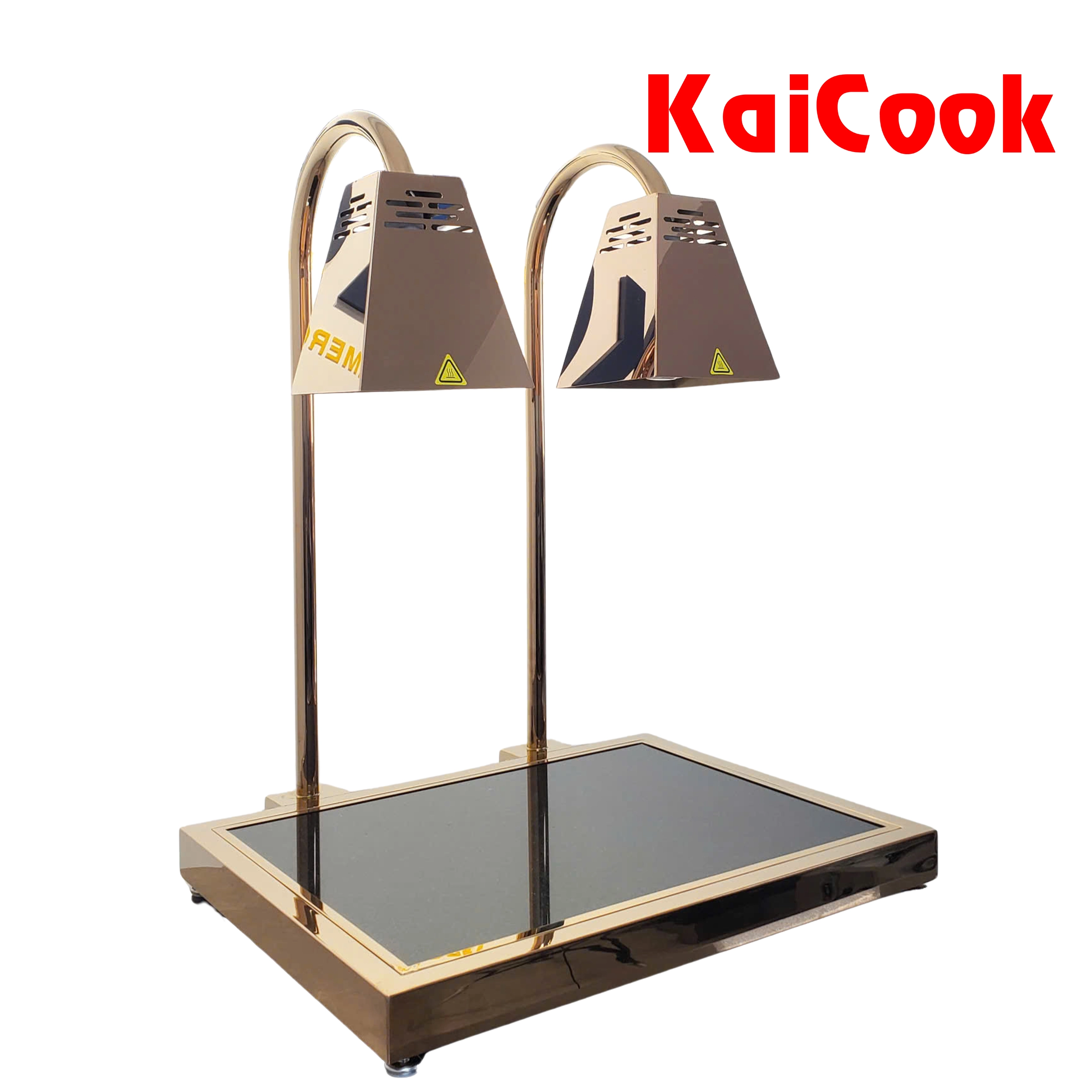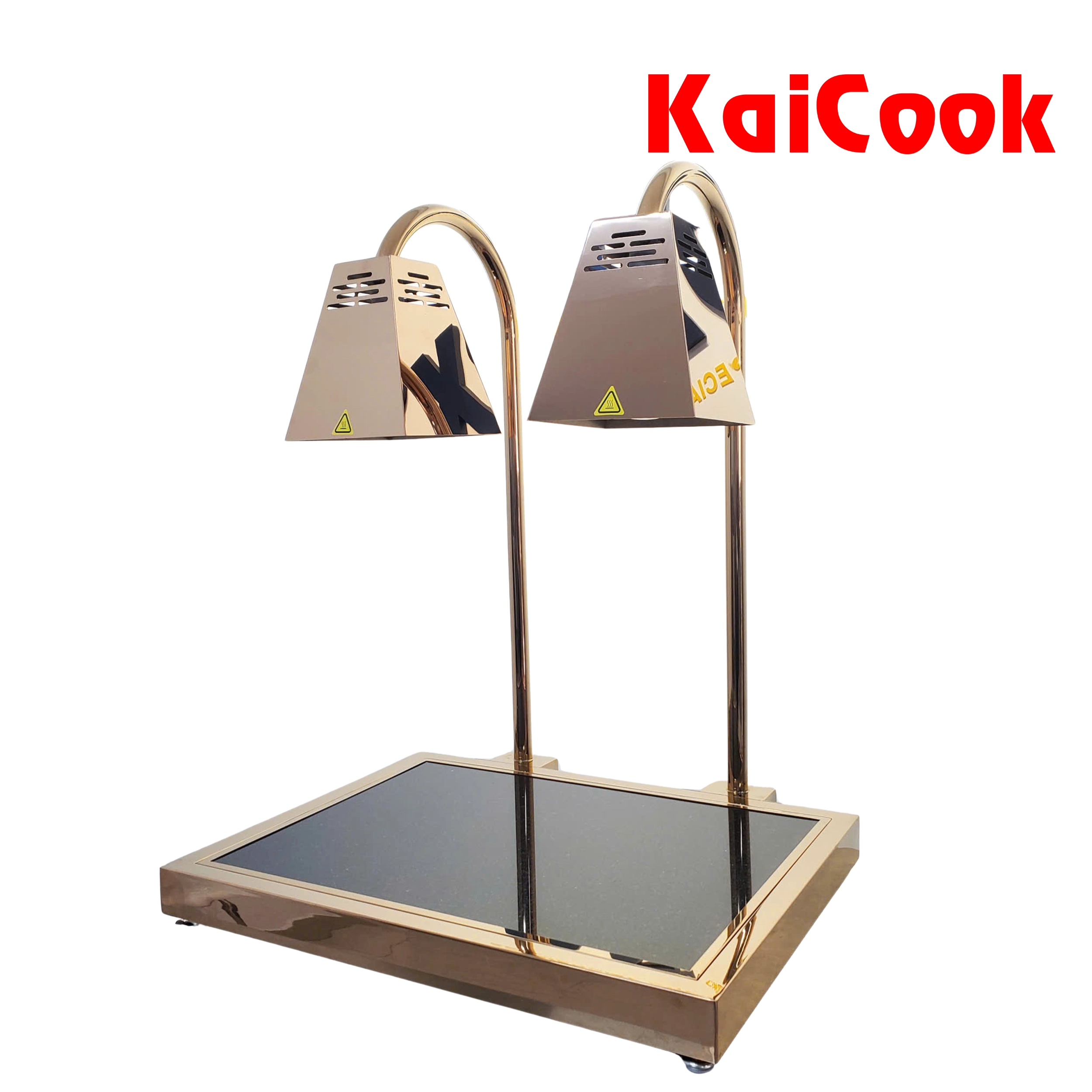 Sản phẩm sử dụng đèn sưởi hồng ngoại kết hợp với mặt bàn đá chịu nhiệt, cho phép giữ nóng thức ăn ổn định, hạn chế thất thoát nhiệt và không làm khô bề mặt món ăn. Toàn bộ thân đèn được gia công từ inox cao cấp, hoàn thiện mạ màu đồng sang trọng, phù hợp với các không gian buffet cao cấp tại nhà hàng, khách sạn, resort và khu carving station.