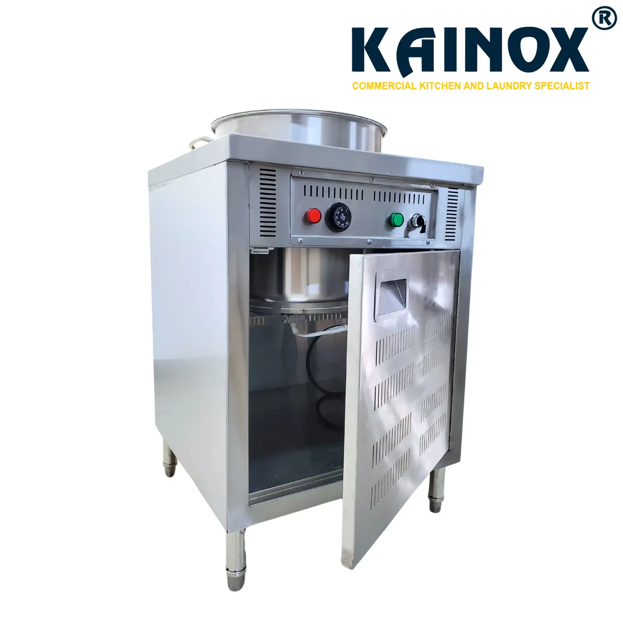 Nồi hâm nóng điện (Nồi Phở) KAINOX là một loại thiết bị giữ ấm, giúp giữ cho thức ăn luôn nóng mà không bị mất hương vị hoặc chất lượng trong thời gian dài. Nồi này được sử dụng trong các nhà hàng, khách sạn, bếp công nghiệp, đặc biệt là trong các bữa tiệc buffet hoặc khi cần phục vụ nhiều người.