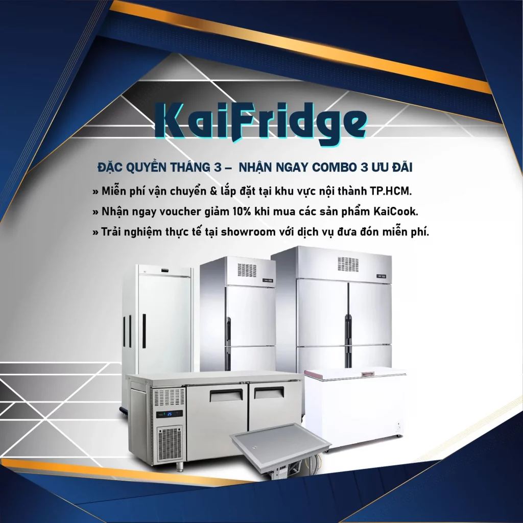 Vì Sao Nên Chọn KAIFRIDGE? KaiFridge không chỉ là một thiết bị làm lạnh thông thường mà còn là giải pháp bảo quản thực phẩm tối ưu, giúp doanh nghiệp nâng cao hiệu suất vận hành bếp công nghiệp. 1. Hiệu suất làm lạnh mạnh mẽ KaiFridge được trang bị công nghệ làm lạnh tiên…